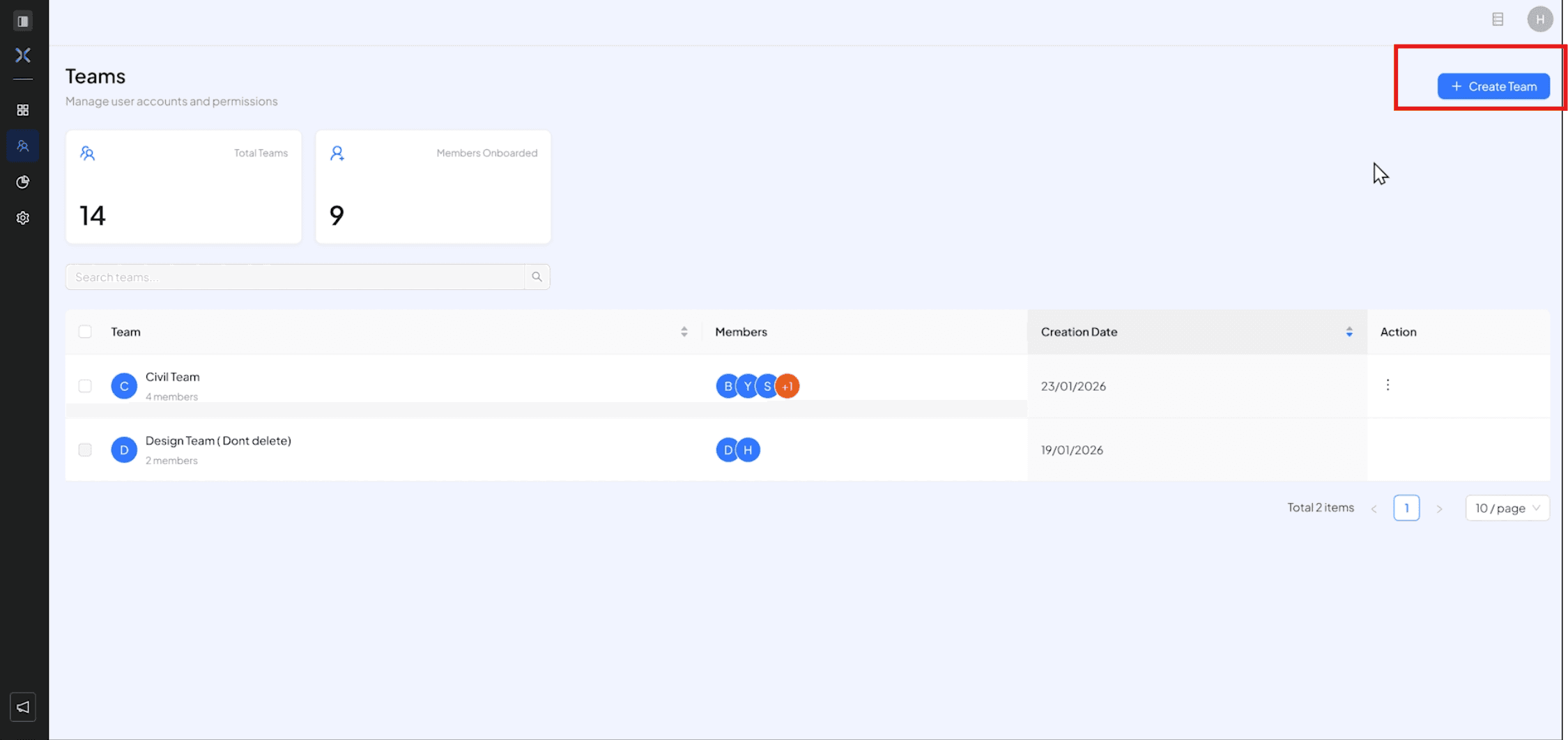 On you main dashboard, Click on the “Team” icon on the main navigation bar.