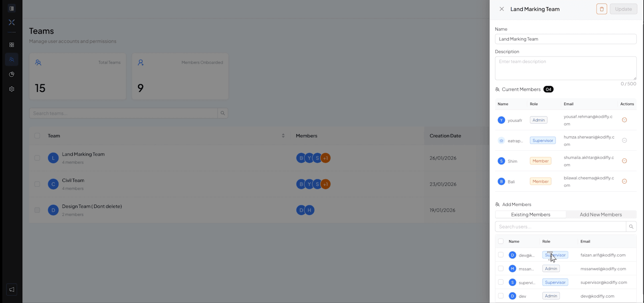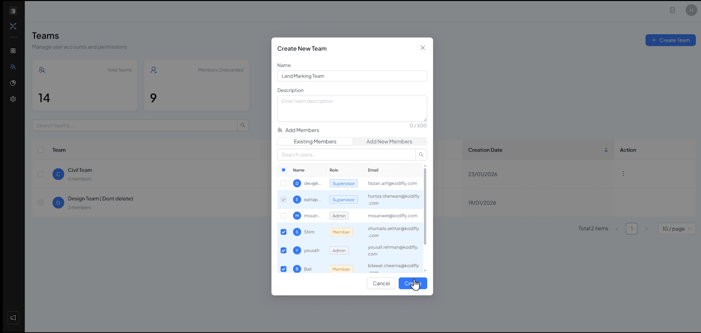 Fill in the Details, you can either Add existing member in the team OR invite new members with an email invite and give them permission according to your need