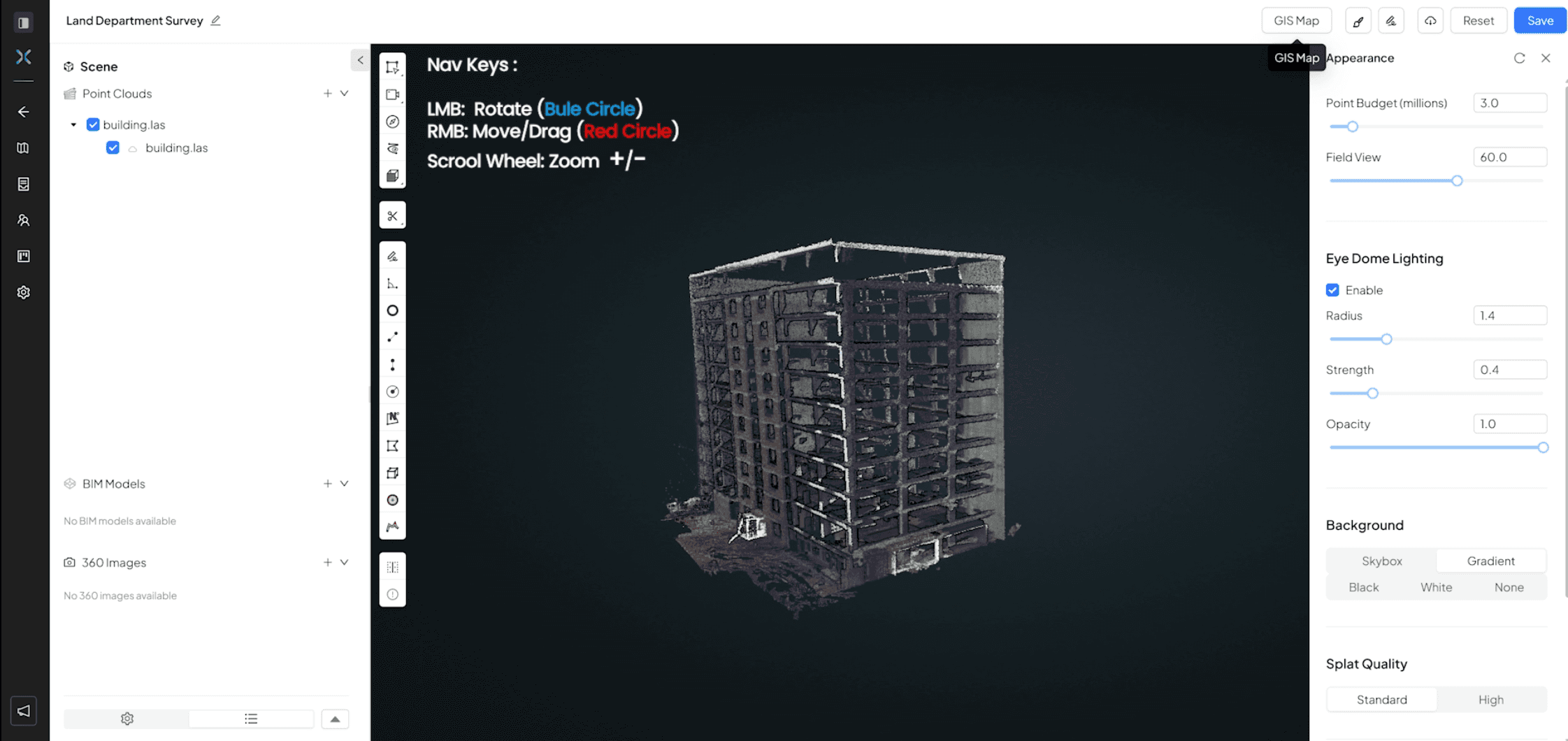 Now that your data is uploaded and verified, it’s time to step inside the project. The 3D Viewer is your centralized command center, where point clouds, BIM models, and 360° imagery converge into a single, navigable environment.